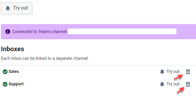 After this is done, you will find the 'Connect' button behind the inboxes again. Connect the inbox as you have done before in [MS Teams](https://manuals.dialox.ai/studio/channels/ms-teams). Your Botsquad notifications will now be received in the new MS Teams Channels.