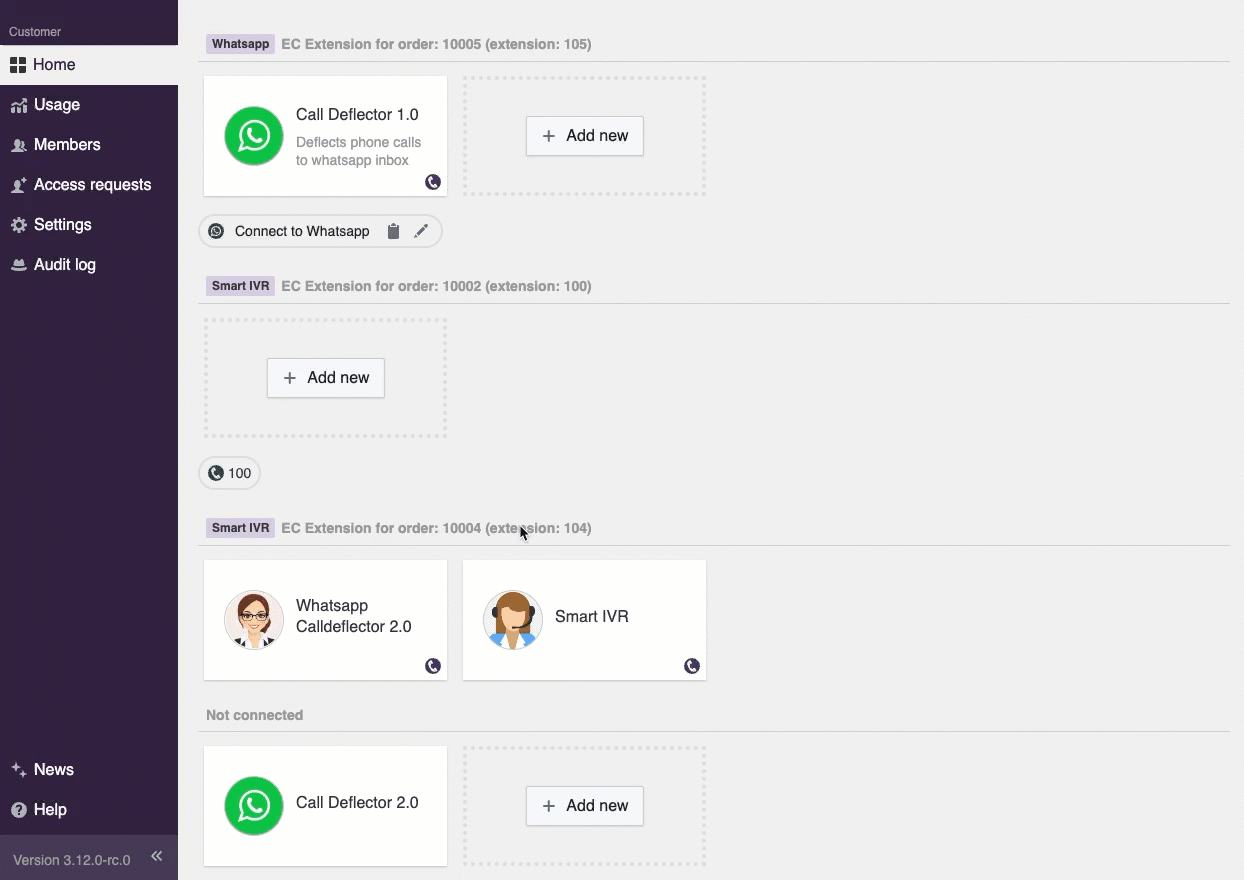 As stated above everything in this view is drag & dropable. For instance, if you have an order (105 extension) and want to remove the connection, go ahead and drag it to the Not connected area. You will see that the 105 extension will be dropped. With this action you remove the existing license from your Bot.